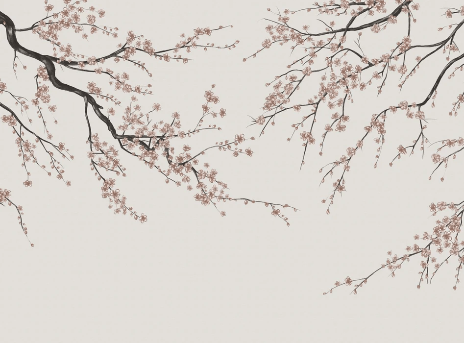 Sakura beige panoramic wallpaper
