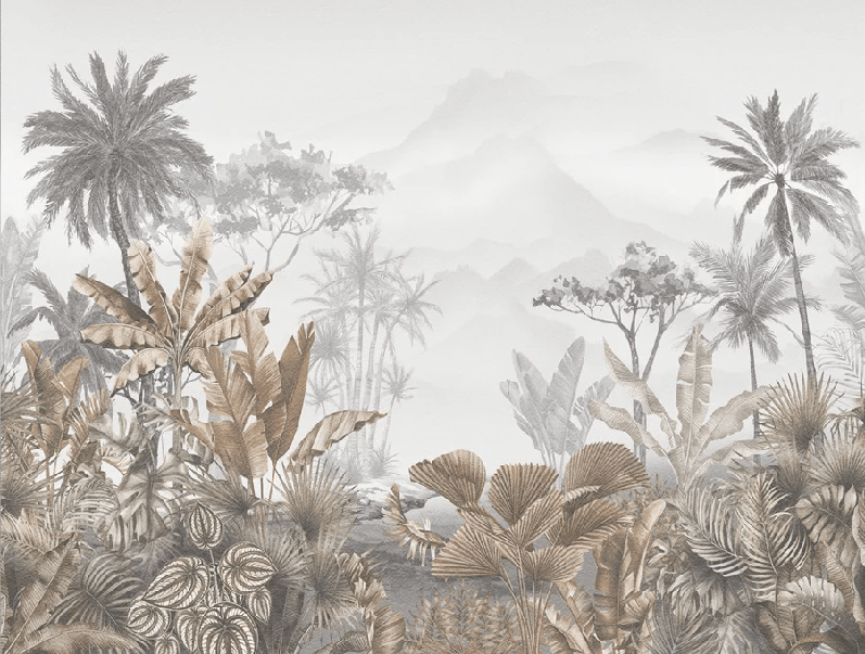 Tropical sepia restaurant wallpaper