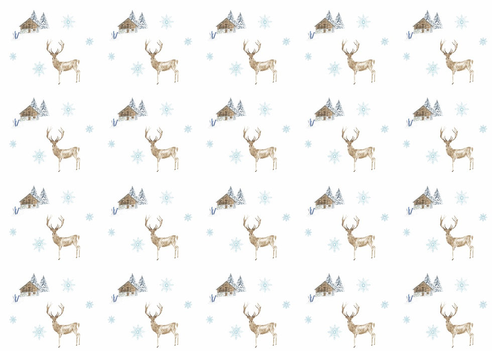 Ce papier peint motif montagne met en scène un décor répétitif raffiné composé de cerfs majestueux, de chalets alpins, de sapins enneigés et de flocons de neige, dans une palette douce et chaleureuse. Inspiré de l’univers montagne et chalet, ce motif crée une ambiance cocooning, élégante et authentique, idéale pour les intérieurs alpins et les décorations hivernales chic.