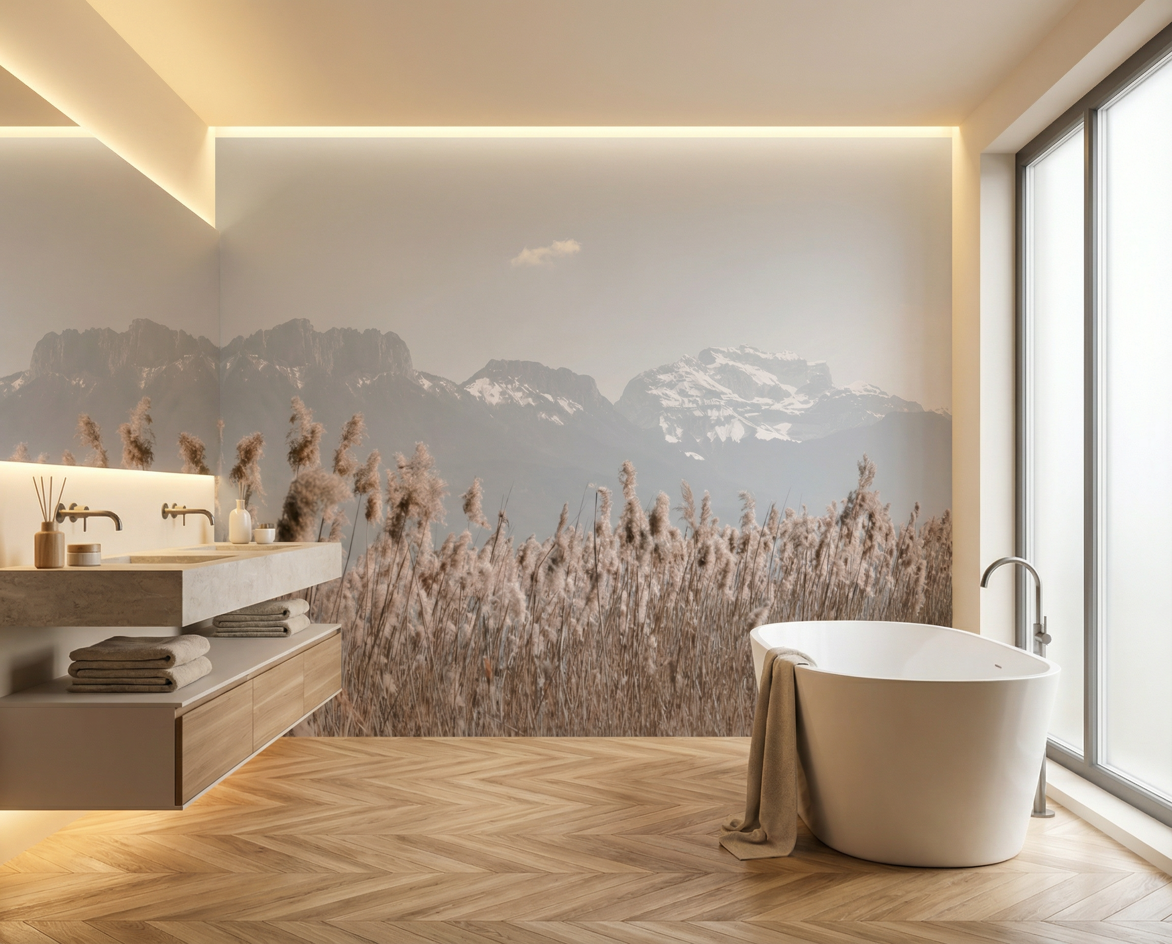 Give your interior a breathtaking view of the Alps with our wallpaper depicting the western slope of the famous "Tournette," a majestic backdrop inspired by the region's legendary peaks. This mountain landscape wallpaper features the imposing silhouette of the Tournette, rising proudly opposite the legendary Mont Blanc.
