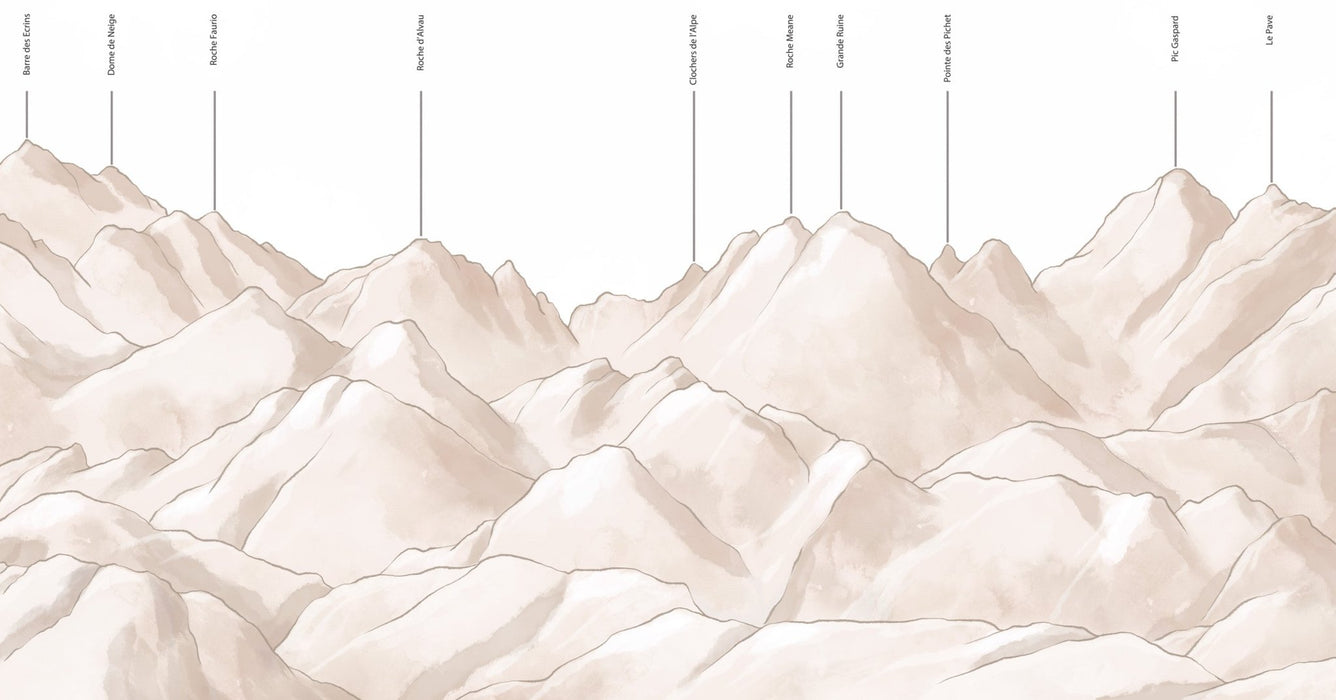 This massif des Écrins panoramic sepia wallpaperwill transform your wall decor. Thanks to its unique wall decor and original color, the atmosphere of your room will be transformed and you'll visually gain height. Would you be the next mountaineer to climb and traverse these peaks? We say yes!