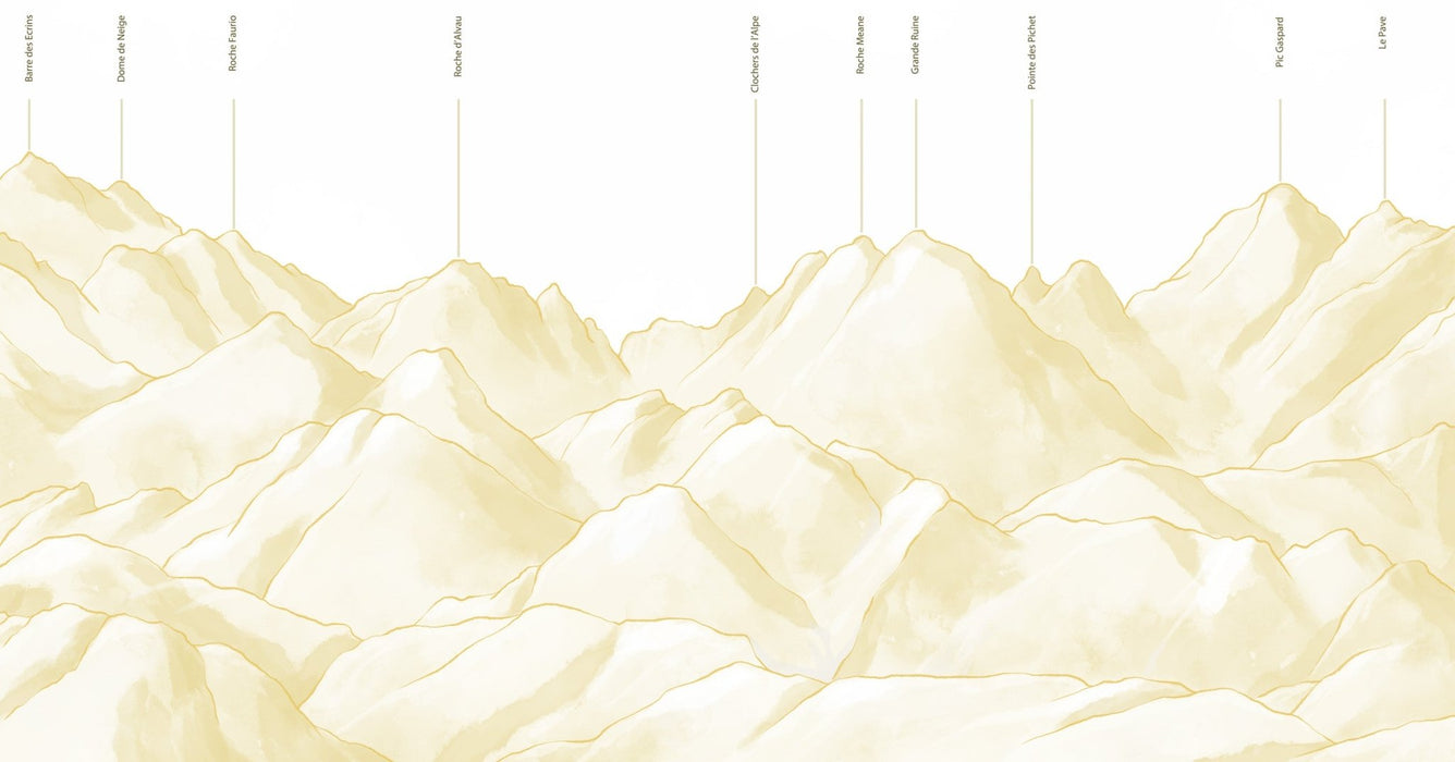 Change your interior design with our yellow Écrins massif wallpaper. This yellow mural depicts the Écrins massif, formerly known as the Pelvoux massif. The Écrins massif, nestled in the French Alps, offers breathtaking scenery and captivating natural wonders. Sublimate your walls with the vertiginous mountains and glaciers of this French must-see massif in a yellow version.