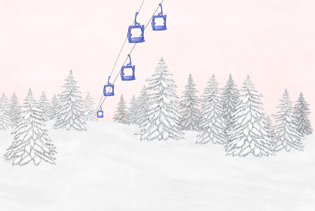 The cornflower gondola wallpaper will surprise and magnify your interior with its bold colorimetry. On a pastel background, discover the splendor of cable cars, in the color of cornflowers. An original color that adds pep to your wall decor. Dare to stand out from the crowd and choose a panoramic wallpaper in rich, bold colors. This mountain wallpaper will give you the illusion of living at the foot of the ski resorts.