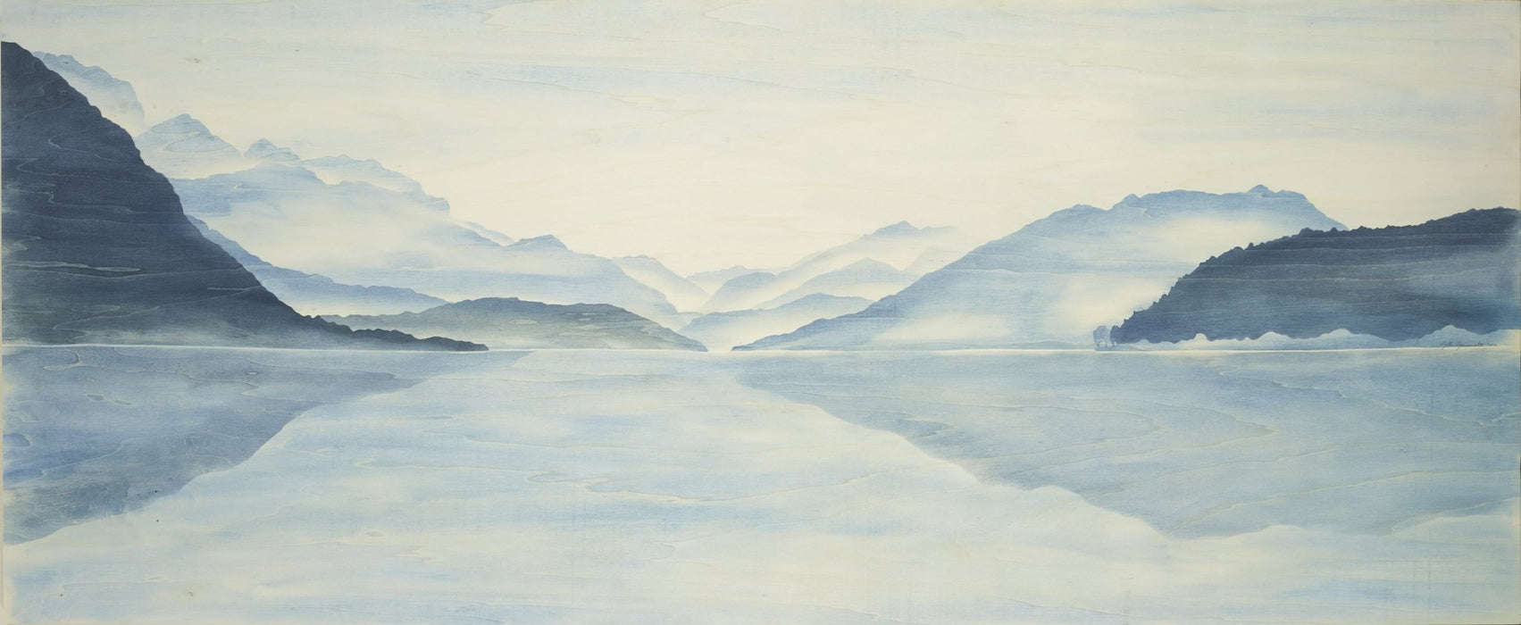 With its deep blue hues and luminous reflections, this large-format wallpaper captures the serenity of Lake Annecy. The warm hue comes from the wood grain visible on the wallpaper, adding an authentic, organic touch to the whole. Every detail reflects the talent of Gilles Giacomotti, a master at capturing the light and contrasts of nature.