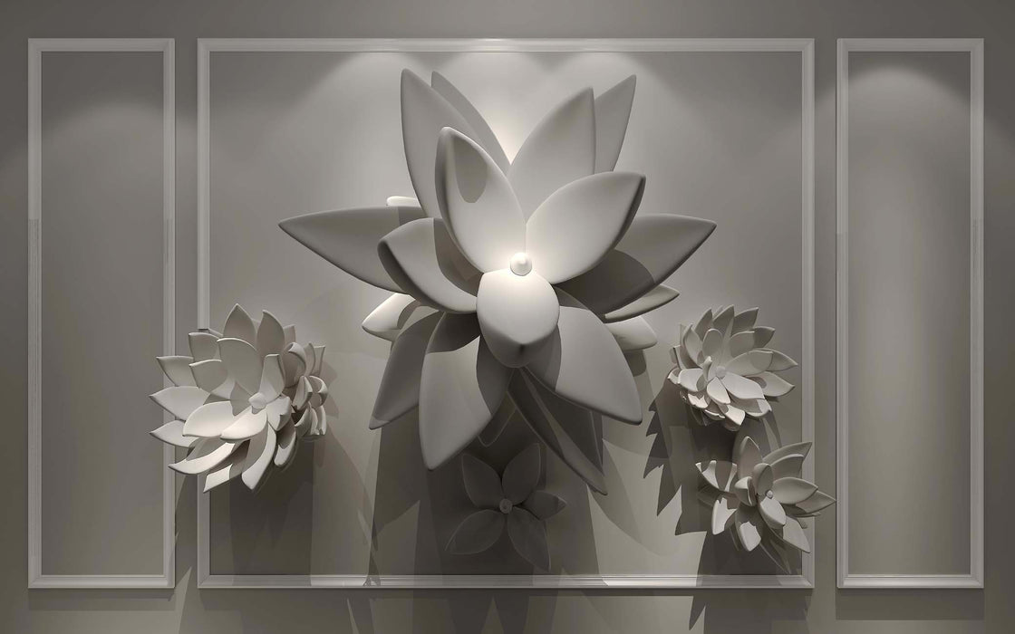 Discover our 3D flower frame wallpaper. This realistic floral tapestry is ideal for a bedroom, living room or office. A wall decoration sculpted in stone, it will give perspective and modernity to your interior. A bucolic, bespoke wallpaper to personalize your room and give it depth. This charming wallpaper is also ideal for hotel rooms.