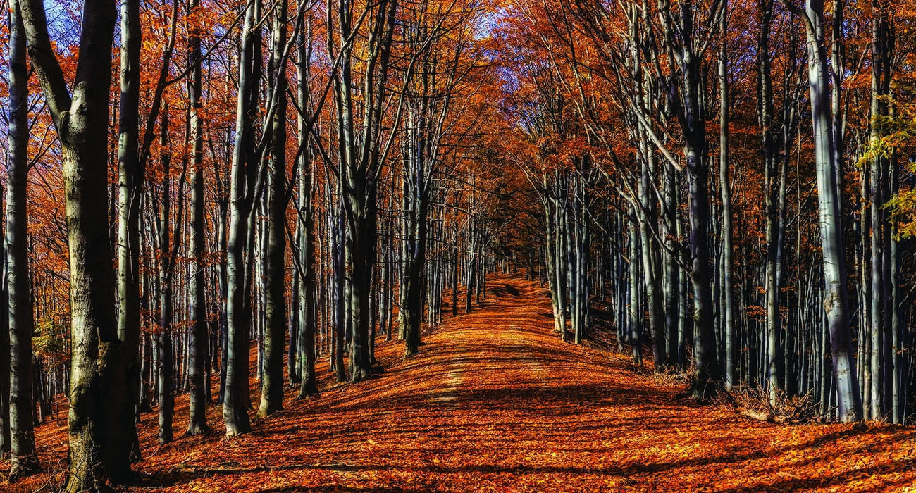 Our autumn stroll panoramic wallpaper will enhance your interior with its warm, inviting colors, creating a zen-like, poetic atmosphere. The realism of this XXL wall decor is breathtaking, giving you the impression of living on the edge of the woods, with the autumnal scents of the forest.