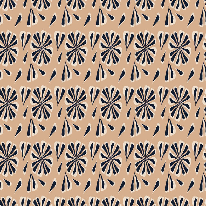 Transform your walls with our camel rosacé wallpaper, a true work of art that will bring warmth and sophistication to your interior. This unique pattern features abstract, hand-drawn rosettes, offering captivating visual texture and unrivalled handcrafted charm. The patterns bring a natural dynamic and authentic character to any room in which it is placed. The comforting, soft and timeless camel hue blends perfectly with a variety of decorating styles, whether modern, bohemian or classic.