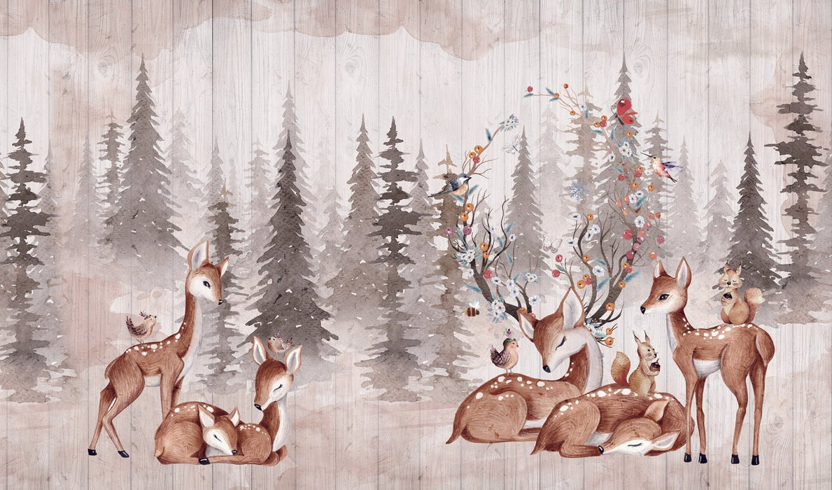 Bring softness and tenderness into your child's bedroom with this children's bedroom wallpaper douces biches. The tender watercolor motifs will soothe your child. Easily create the imaginary world he's always dreamed of with our made-to-measure wall tapestry. Suitable for small and large sizes. Environmentally and interior-friendly children's wallpapers (PVC-free), ideal wall decor for a child's bedroom. All our wall creations are tailor-made to fit your wall perfectly. A harmonious result guaranteed.