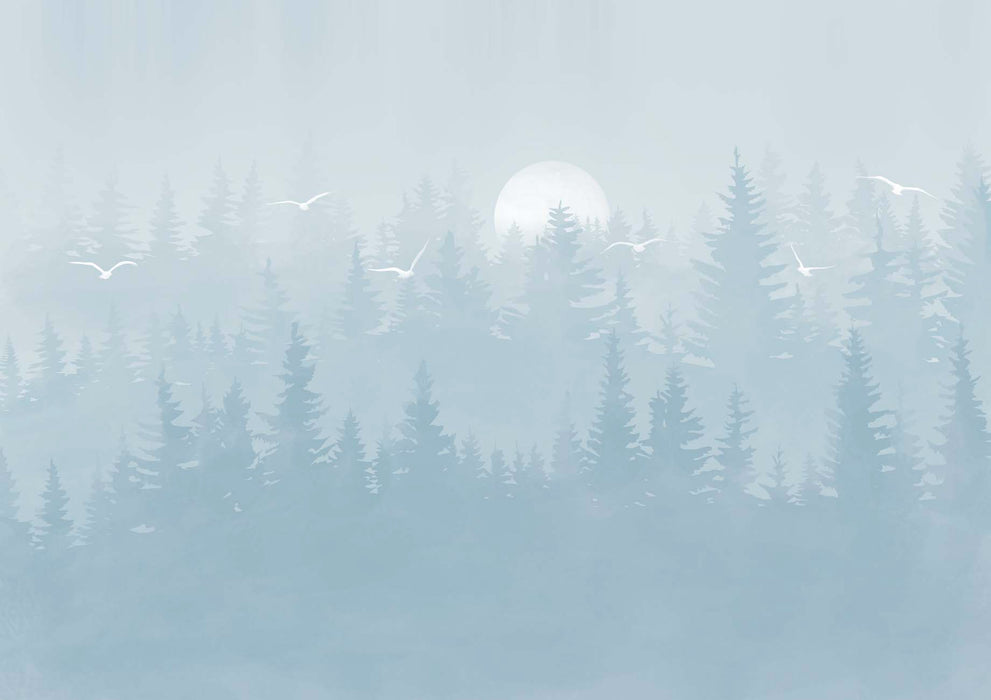 Children's bedroom wallpaper Scandinavian forest moonlight blue