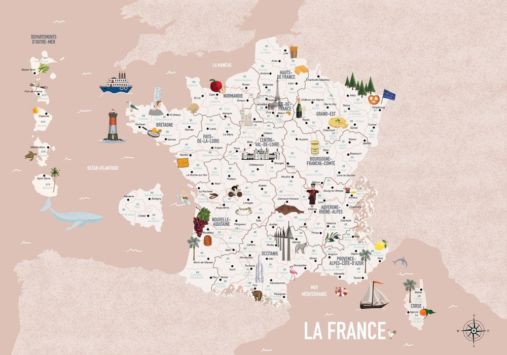 Transform your child's bedroom with our pinkish-beige carte de France wallpaper, an elegant and educational choice for a unique wall decoration. This wallpaper illustrates a magnificent map of France in soft tones of beige and pink, perfect for creating a warm, soothing ambience. Ideal for children's bedrooms, it combines style and learning, inviting little ones to explore the French regions while adding a modern, on-trend touch. Made from sustainable, environmentally-friendly materials, this wallpaper is easy to hang and hard-wearing. Make your child's bedroom an inspiring and refined space with this carte de France wallpaper in delicate hues. Perfect for parents looking for an original and educational decoration.