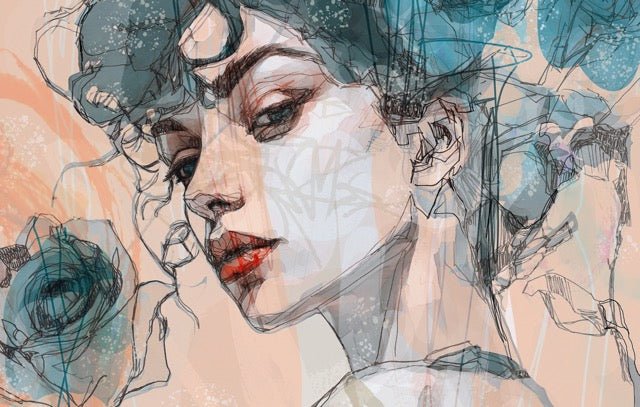 This artistic wallpaper features a portrait of a woman in a modern graffiti style, combining finesse and power of expression. With vibrant blue and pink colors, the art wallpaper depicts a delicate face with a persuasive gaze, where emotion shines through the fine, meticulous strokes. This graphic work blends seduction, persuasion and gentleness, creating a unique and captivating atmosphere. An elegant flower, discreetly integrated into the design, symbolizes beauty and femininity, adding a touch of refinement to this work. This trendy wallpaper is perfect for those looking for an exceptional wallpaper, combining art and interior design for a touch of originality and style in any space.