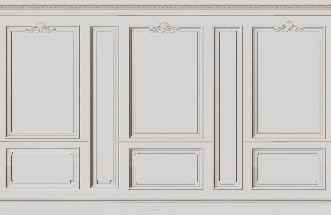 Warm gray French Haussmann wallpaper decorates interiors with elegance, its trompe l'oeil pattern imitating wood paneling is both sober and chic. The quality of the moldings is exceptional. This made-to-measure non-woven wallpaper will impress your guests, and will find its place in every room of your home, as well as in hotel rooms and restaurants. Your interior will gain in perspective and relief with this exceptional wall panel.