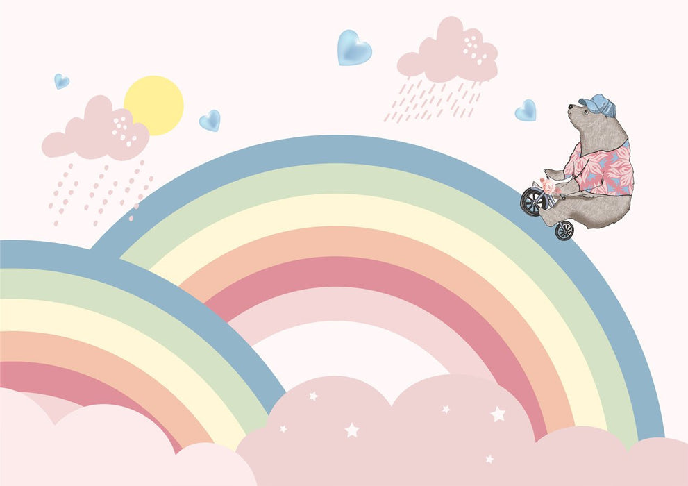 Let yourself be transported by our French rainbow children's wallpaper for a child's bedroom illustrated with a beautiful rainbow. This tapestry for a child's bedroom is also ideal for a baby's room or a playroom. Rather girly, this colorful wall decoration will tell sweet stories and bring tenderness to the ambience of your room. Choose made-to-measure wallpaper for your baby's room. Eco-responsible, eco-friendly wallpaper.