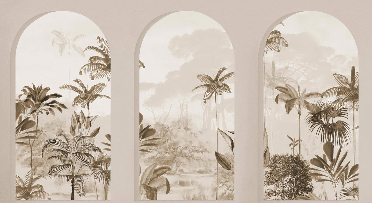 Immerse yourself in tropical lushness with our lush arches wallpaper. This captivating design features arches wrapped in lush vegetation, evoking an enchanting journey through an exotic jungle. Every detail of this sepia wallpaper is carefully crafted to create an immersive, revitalizing ambience in your interior space.