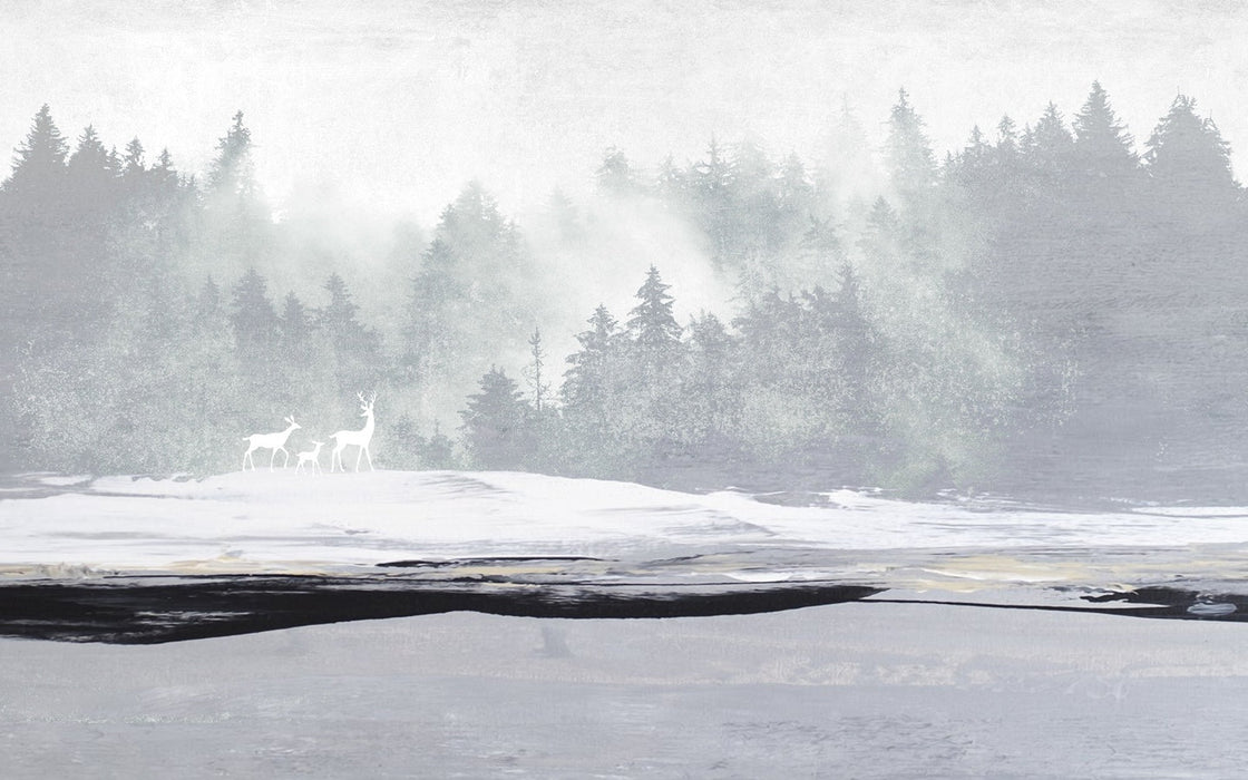 Discover our misty forest and deer wallpaper, which will take you to the edge of a snowy forest. This abstract-style nature wallpaper is ideal for a bedroom, living room or office. A made-to-measure wall decoration that will bring light and freshness to your room. A single artistic mural to transform and make your interior unique. A trendy wallpaper that will delight your eyes. Choose a custom panoramic wallpaper for an eye-catching effect.