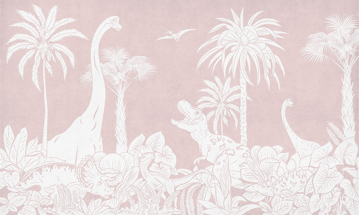 Decorate your child's bedroom with our monochrome pink dinosaur wallpaper! This pink dinosaur wallpaper has been designed with children's bedrooms in mind. This dinosaur wall fresco is perfect: it brings a soothing atmosphere thanks to its soft, pastel monochrome pink color. With its dinosaur motifs, this panoramic children's wallpaper brings a sense of adventure. A mixed wallpaper we love.