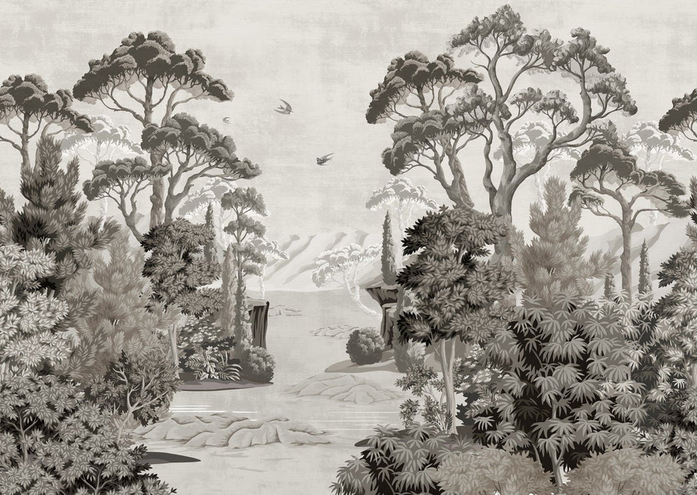 A watercolor motif, painting a landscape of yesteryear, this panoramic wallpaper will sublimate your interior, bringing elegance and character. In monochrome to bring chic and refinement to your interior, antique-style wallpaper is ideal for bedrooms, living rooms and entrances. With this made-to-measure mural, you'll create a chic interior. This mural is a retro illustration revisited and modernized to suit today's interiors, while retaining an elegant touch of yesteryear. The black-and-white theme goes perfectly with decorative objects in wood, rattan, bamboo and Haussmann molding.
