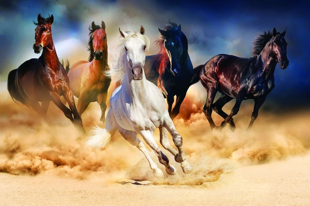 Our panoramic desert horses wallpaper will take you back to the world of these animals, so beloved by young and old alike, who once accompanied princes and princesses. The spectacular details of this XXL wall decor will take you on a journey through time and space, and add depth to your wall.