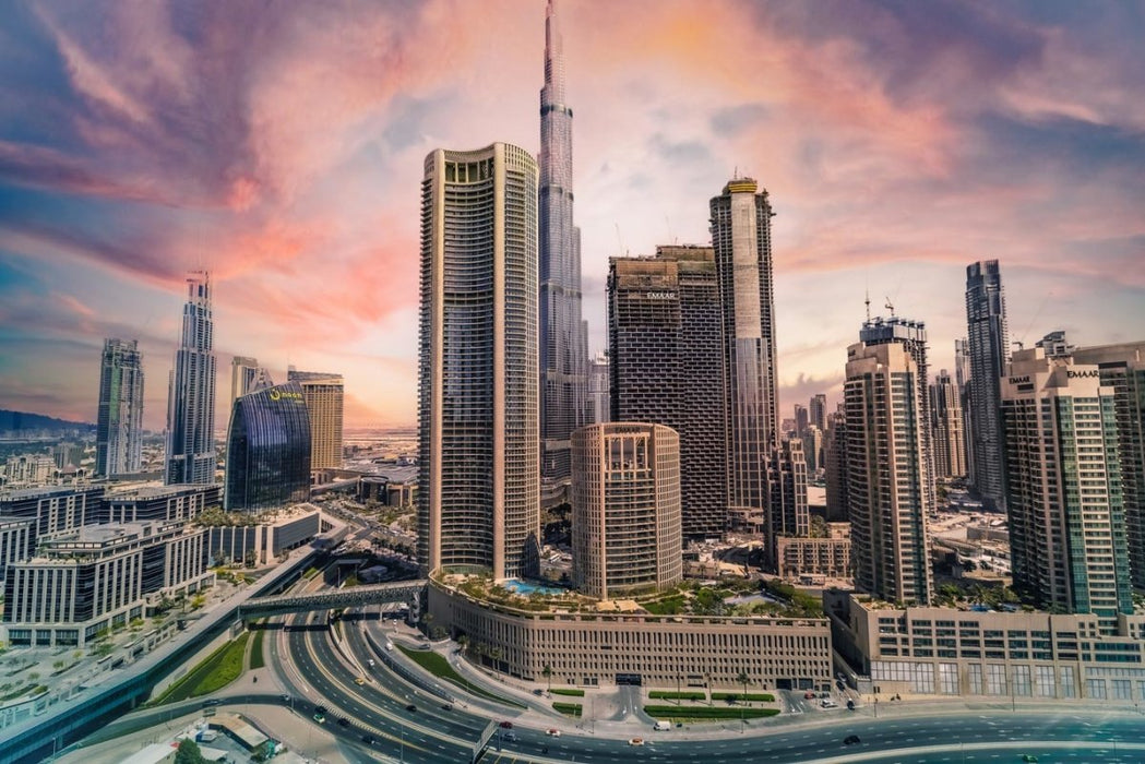 Panoramic wallpaper Dubai city sunset