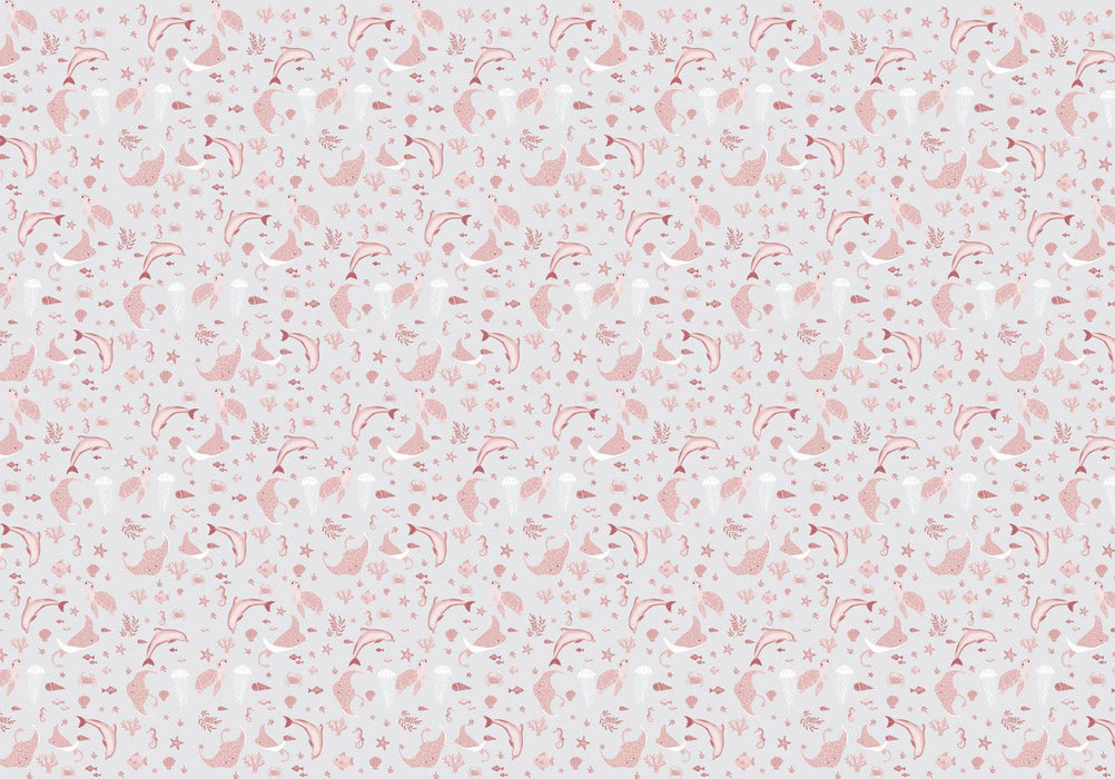 Choose the powder pink oceania wallpaper to decorate your baby's nursery. This made-to-measure wallpaper with marine motifs is ideal for introducing your baby to shapes and colors. The soft, pastel colors of this panoramic non-woven wallpaper will blend perfectly with the ambience of a baby's room.