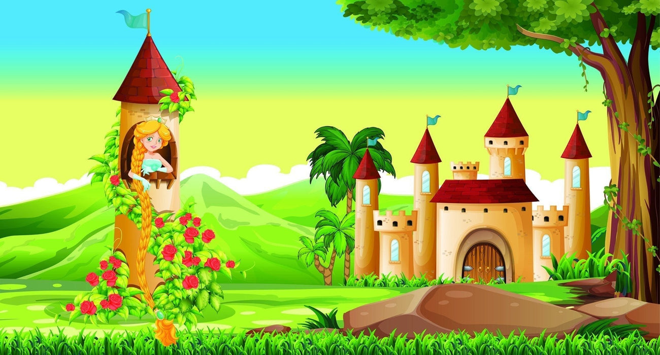 Does your child love the world of princesses and castles? Our golden-haired princess wallpaper will immerse them in this magical, fairytale world. As she waits for her prince charming to come and free her, this golden-blond hair grows and helps the prince to save her.