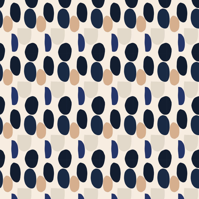 Put a retro round pattern on your walls, for a retro yet contemporary touch with this geometric wallpaper. Its round patterns, in blue-black, petroleum blue, beige and terracotta, vary between full and half circles, creating a dynamic, modern design. Ideal for a living room or bedroom, this abstract wallpaper adds depth and character to any room, while adapting to different decorating styles.