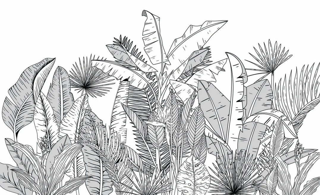 Black and white botanical leaf panoramic wallpaper