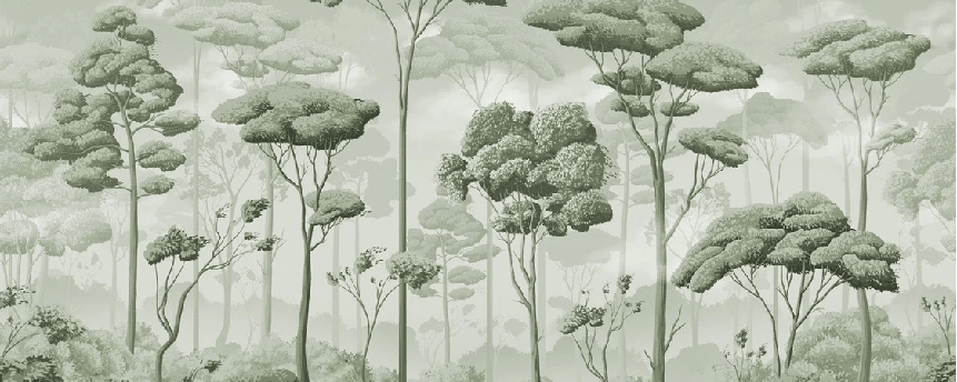 Panoramic pinewood voluptuous green wallpaper