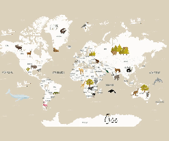 Papier peint Carte du monde en Francais enfant beige