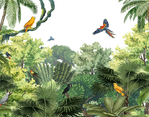 Papier peint enfant perroquets exotiques