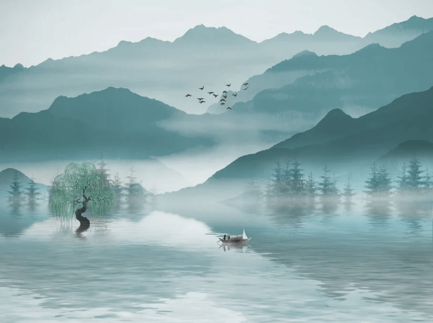 Papier peint entre montagne et lac