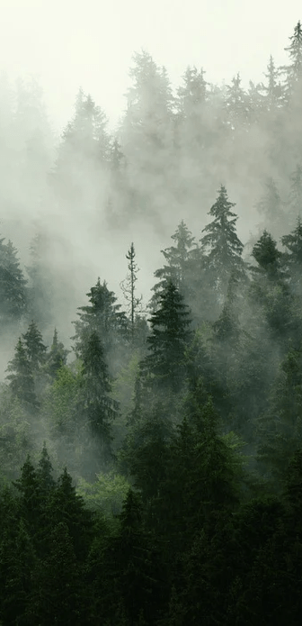 Papier peint forêt brumeuse verte