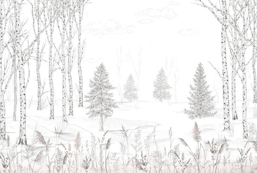 Papier peint forêt noir et blanc – Douceur des Bois