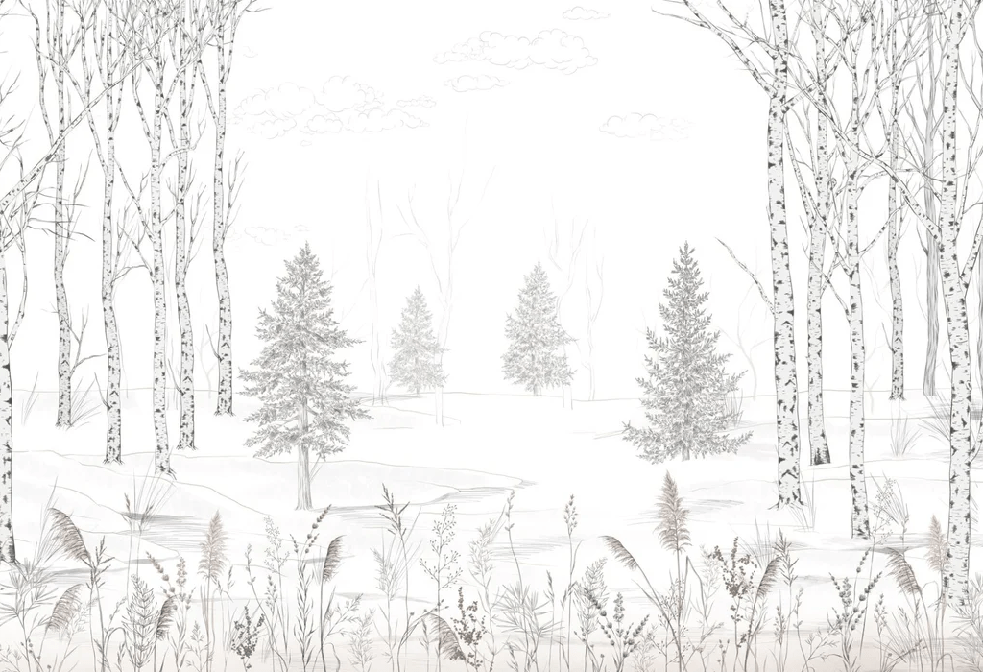 Papier peint forêt noir et blanc – Douceur des Bois