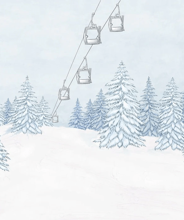Papier peint montagnes télécabine bleu