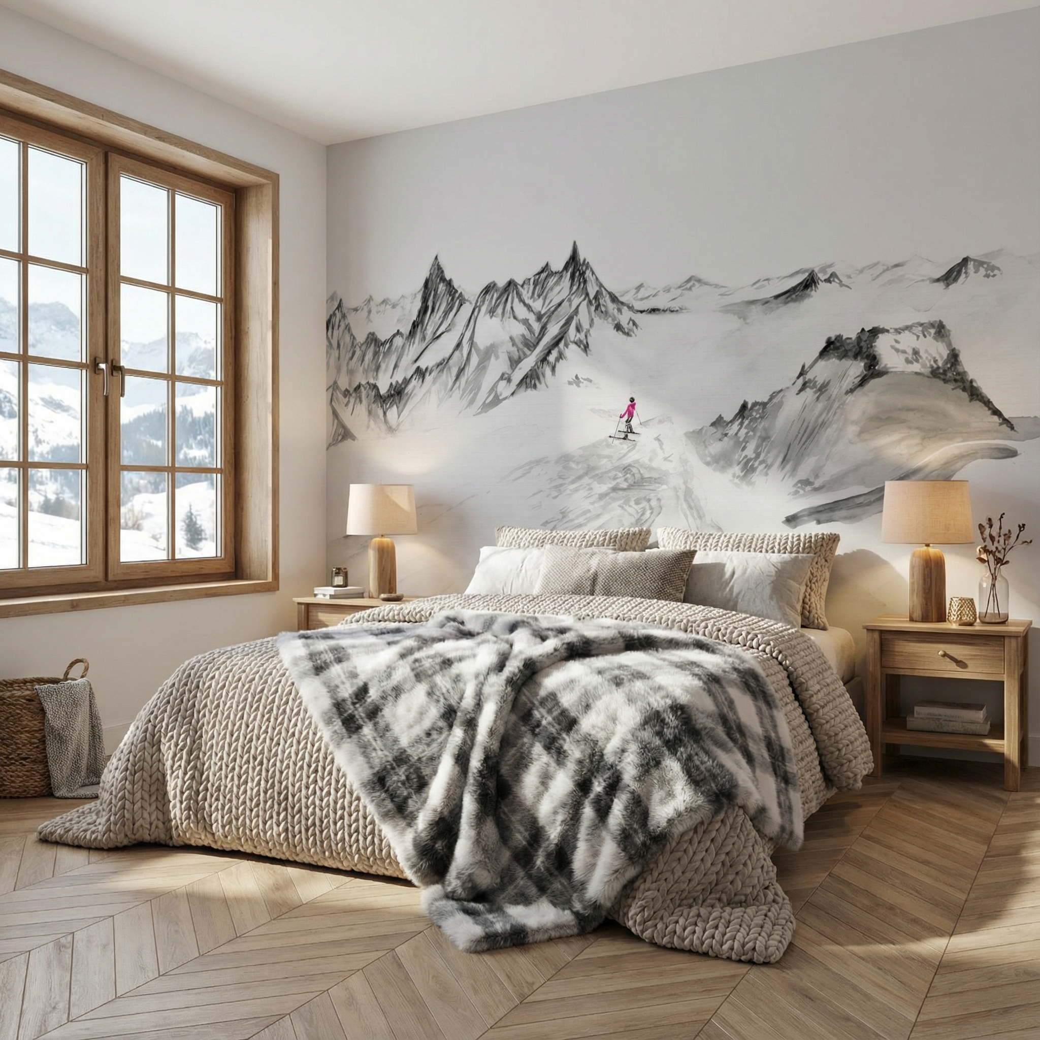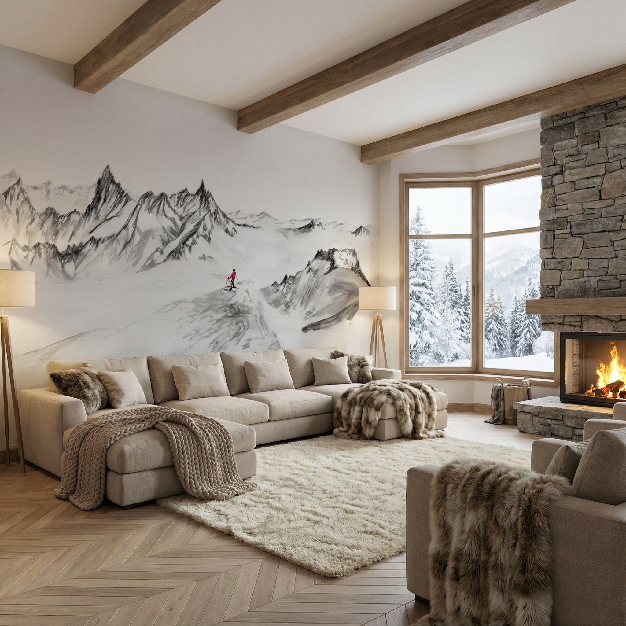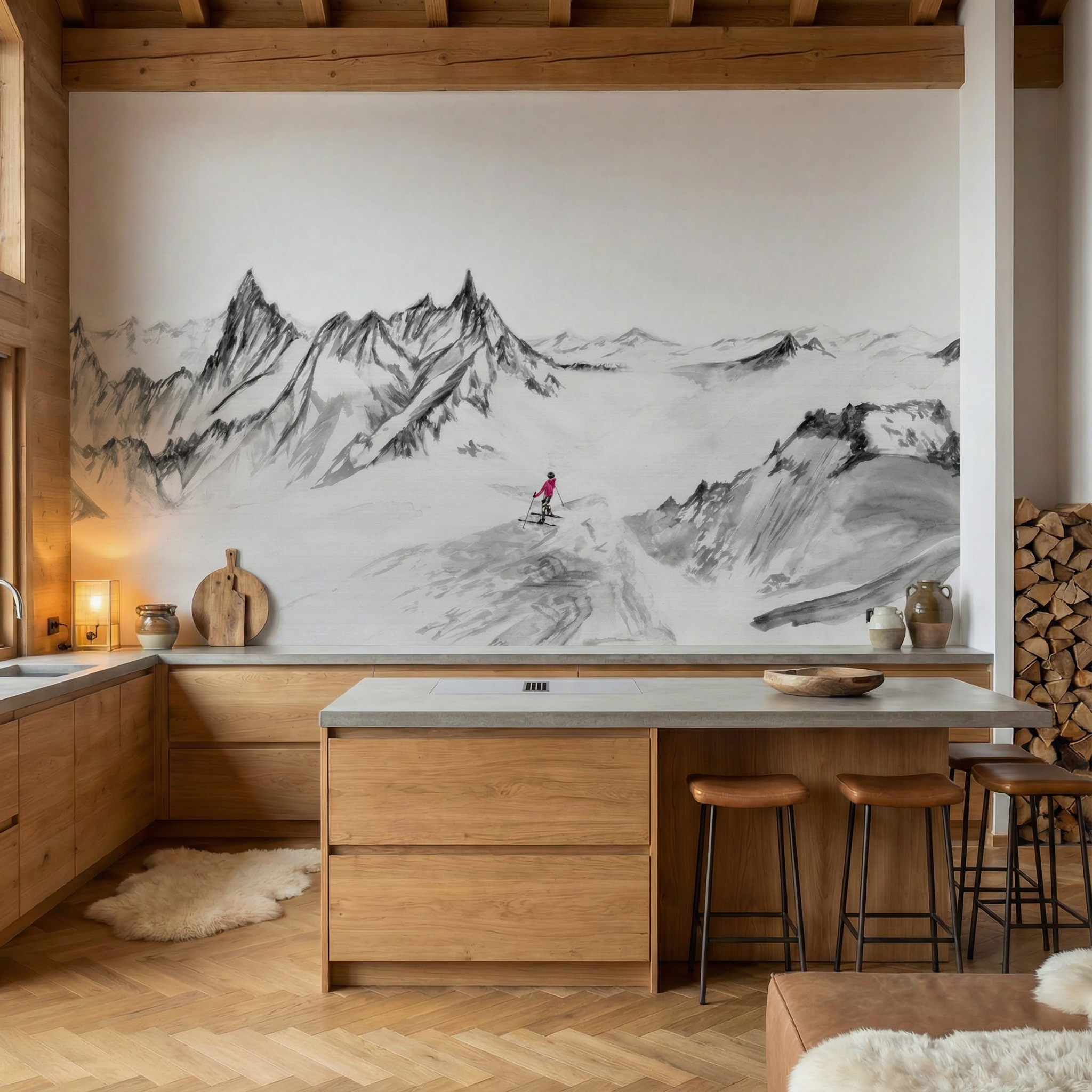 Parfait pour créer une ambiance chalet contemporain, montagne moderne ou refuge design, ce poster mural géant ouvre votre pièce sur la magie de la haute altitude : neige immaculée, arêtes sculpturales et lumière cristalline.