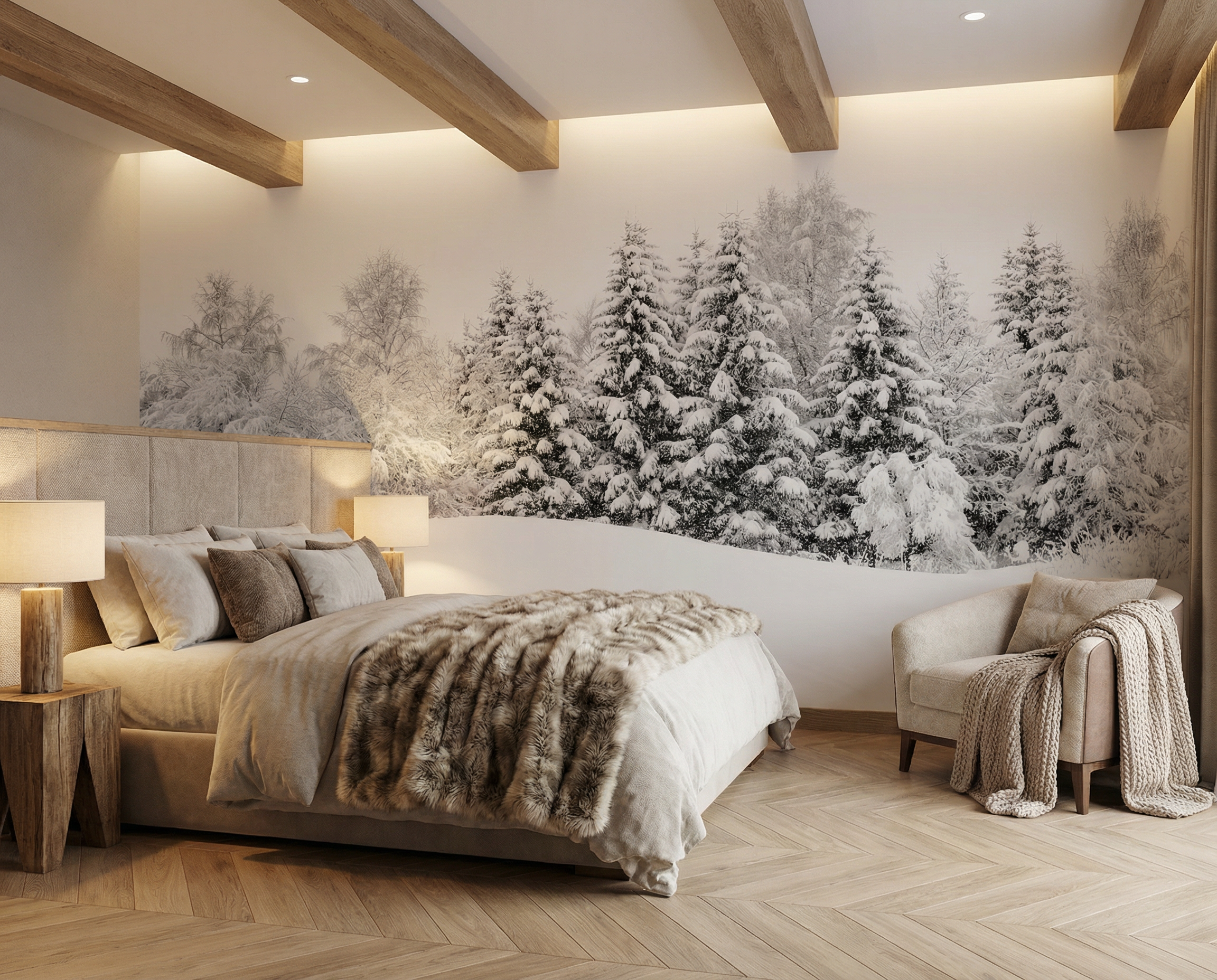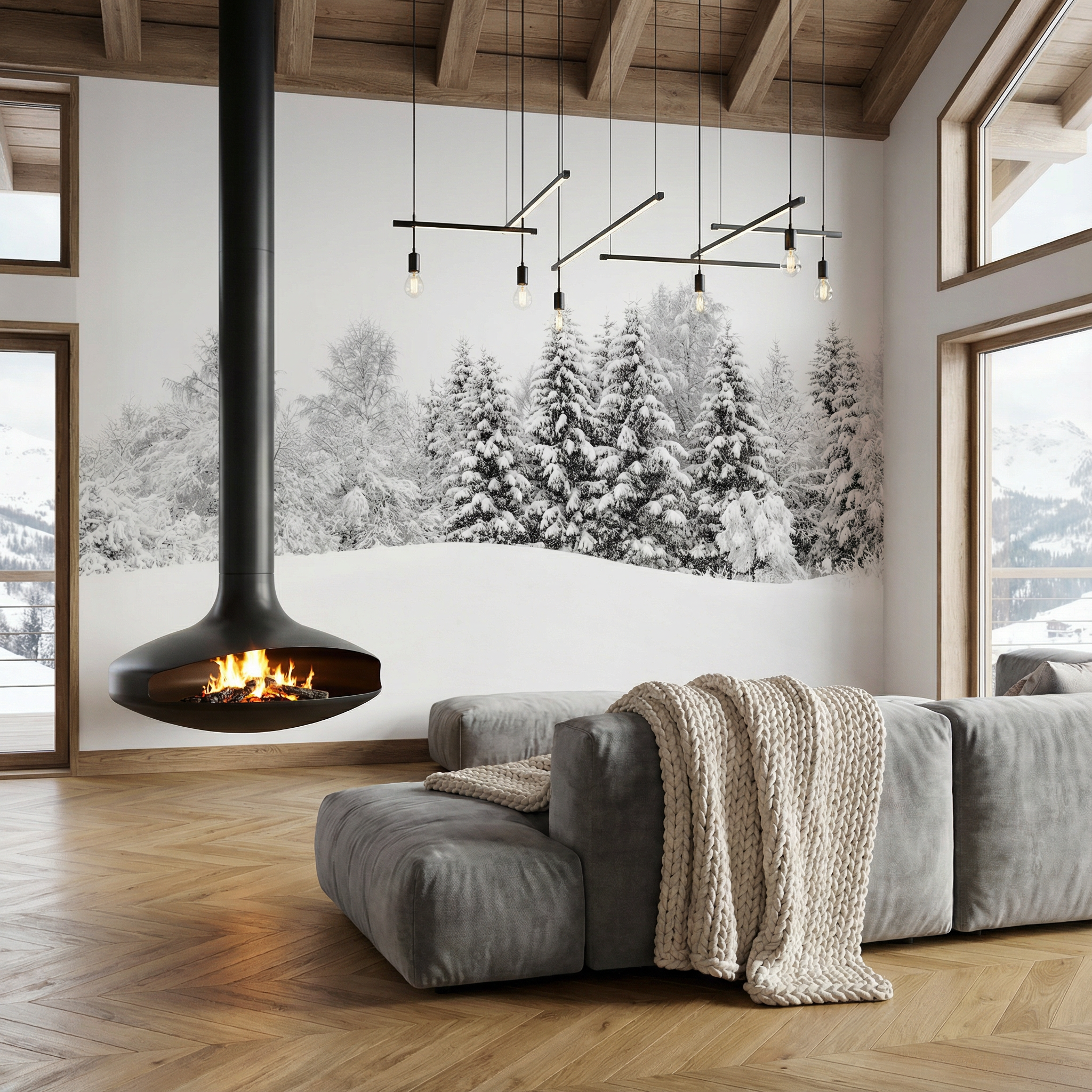 Évasion Hivernale – Papier Peint Panoramique Forêt Enneigée