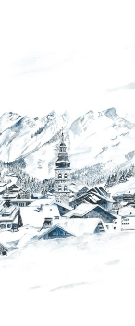 Papier peint panoramique La Clusaz en peinture