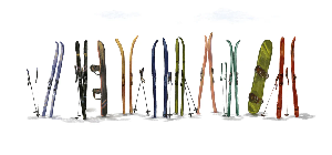 Papier peint panoramique skis colorés
