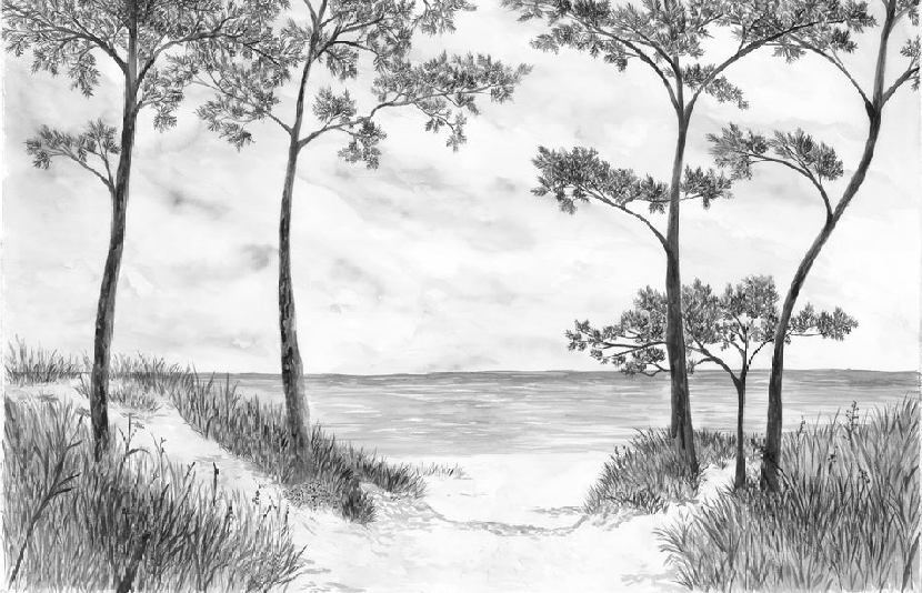 Papier peint Pins maritimes et dunes - Noir et blanc
