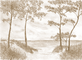 Papier peint Pins maritimes et dunes - Sépia