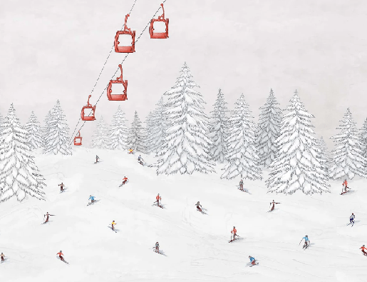 Papier peint télécabine skieurs colorés